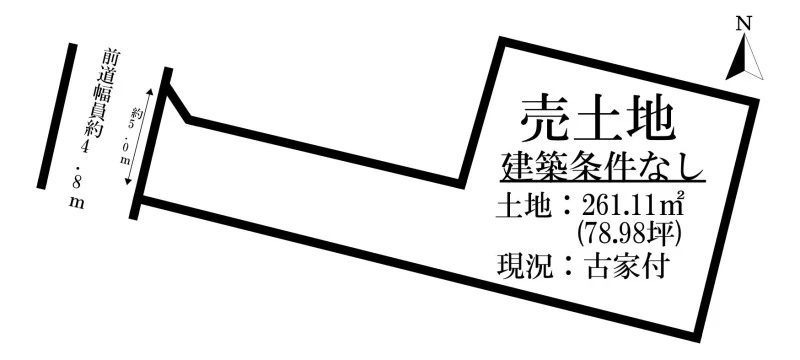| 接道状況 | 西 間口5m 公道 幅4.8m | ||