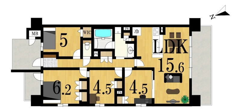 | 間取り | 4LDK | 間取り向き | (角部屋) |